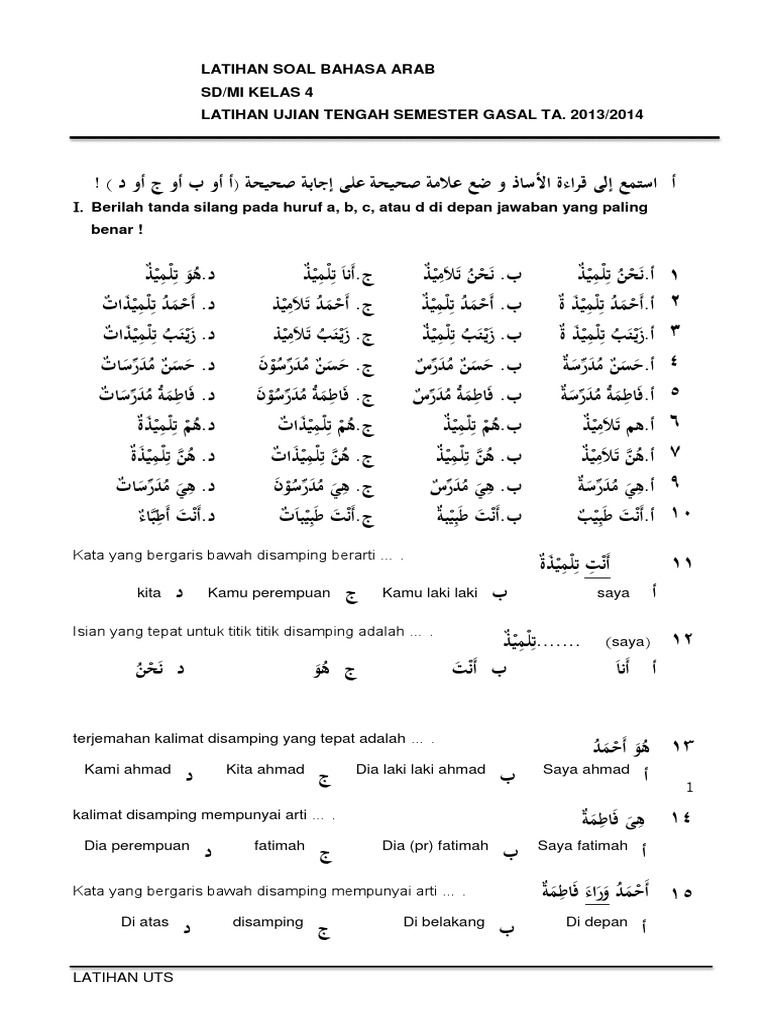 Soal Pas Madrasah Diniyah Takmiliyah Akhlak Kelas 1 6 from 1.bp.blogspot.com Dengan basmalah basmalah dan akhiri dengan hamdalah kerjakan soal yang kamu anggap mudah terlebih dahulu teliti kembali. Posted by bahasa arab itu mudah. Soal bahasa arab kelas xi tkj 1 dan 2. Siapapun boleh mengembangkan asal membeli b. Bagian ketiga yaitu 10 soal bahasa arab pilihan ganda beserta jawabannya yang membahas isim dan pembagiannya terima kasih telah berkunjung di belajarnesia.com dengan judul soal dan jawaban : Soal pkn sd kelas 4 dan kunci jawaban (pilihan ganda, essay, uraian). Ajukan pertanyaan tentang tugas sekolahmu. Ditinjau dari asal usul kata, kewirausahaan berasal dari 2 (.